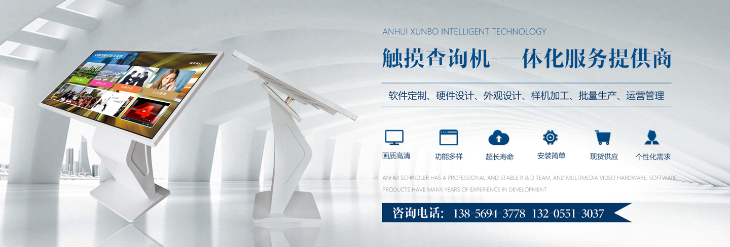迅博智能 位于中國科教城---合肥市,和經(jīng)濟開發(fā)區(qū)與高新區(qū)毗鄰,地址合肥市肥西縣湯口路與皋城路交口人民萬福產(chǎn)業(yè)園一期12棟東側(cè),是一家IT領域的高新技術企業(yè),全心全意服務于信息化建設,做專業(yè)的信息化提供商,全力打造信息時代新模式。 迅博智能 主要從事觸摸屏、觸摸顯示器、OLED柔性觸摸屏、觸摸查詢一體機系列產(chǎn)品及觸摸顯示互動體驗軟硬件產(chǎn)品;智能排隊叫號、網(wǎng)上預約排隊叫號、安康碼皖事通取號系統(tǒng);曲面屏、OLED 屏幕、柔性屏、LCD液晶大屏拼接系統(tǒng);落地式、壁掛式單機版網(wǎng)絡版室內(nèi)外廣告機及數(shù)字標牌廣告信息發(fā)布系統(tǒng);室內(nèi)外LED電子格柵透明屏、單雙色、全彩電子大屏;各類辦事營業(yè)廳:公積金...